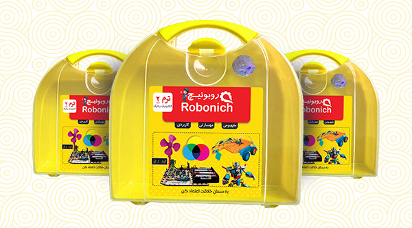 این محصول با برند روبونیچ در جهت آموزش ساده، مفهومی و کاربردی رباتیک و الکترونیک طراحی شده که دانش آموز بتواند بدون نیاز به درک موضوعات پیچیده و با زبانی ساده مکانیزم، نقشه خوانی و کار با قطعات رباتیک و الکترونیکی را آموزش ببیند . با این محصول دانش آموزان از مفاهیم اولیه انرژِی، جریان و ولتاژ الکتریکی تا ساخت چندین مدار و ربات هوشمند و کاربردی بدون لحیم کاری و با استفاده از پیچ و مهره از طریق فیلم های آموزشی و یا کلاس حضوری در کنار کارت های قطعه و نقشه خوانی می توانند آموزش ببینند و بسازند.