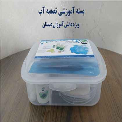 هدف از طراحی و تولید این بسته آموزشی، تقویت روحیه پژوهشگری دانش آموزان و افزایش اشتیاق برای یادگیری آن ها، آموزش اهمیت حفاظت از آب و فراهم نمودن فرصت یادگیری عملی تصفیه آب و استفاده مجدد از آن و آموزش مسئولیت پذیری زیست محیطی است. این بسته ویژه دانش آموزان ابتدایی(مقاطع سوم تا ششم)است. شامل 2 آزمایش (تصفیه آب با استفاده از کربن فعال و تصفیه آب با استفاده از پارچه است). محتویات بسته شامل 10 قطعه( کربن فعال، رنگ خوراکی، دستکش، پارچه، قاشق، کاغذ صافی، هاون، بشر، قیف و راهنمای انجام آزمایش است.